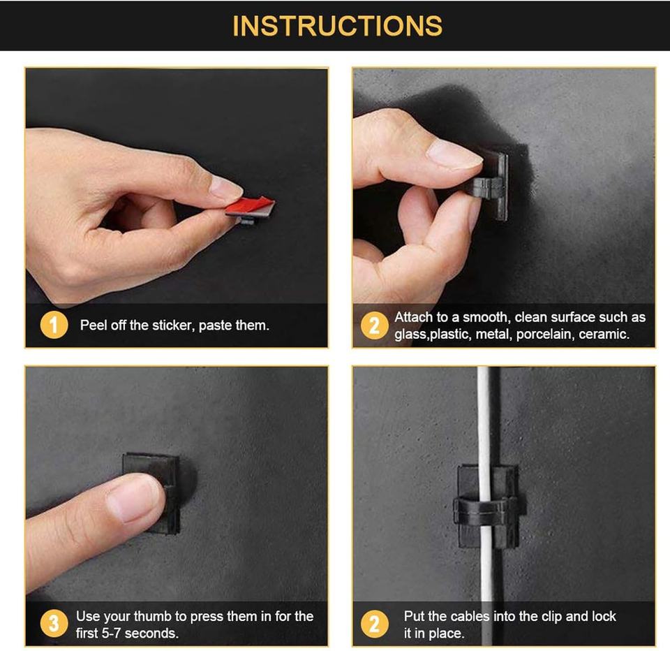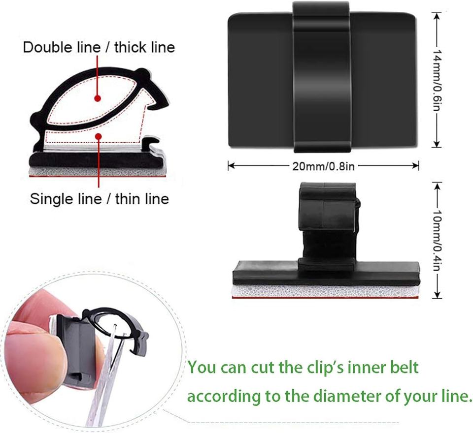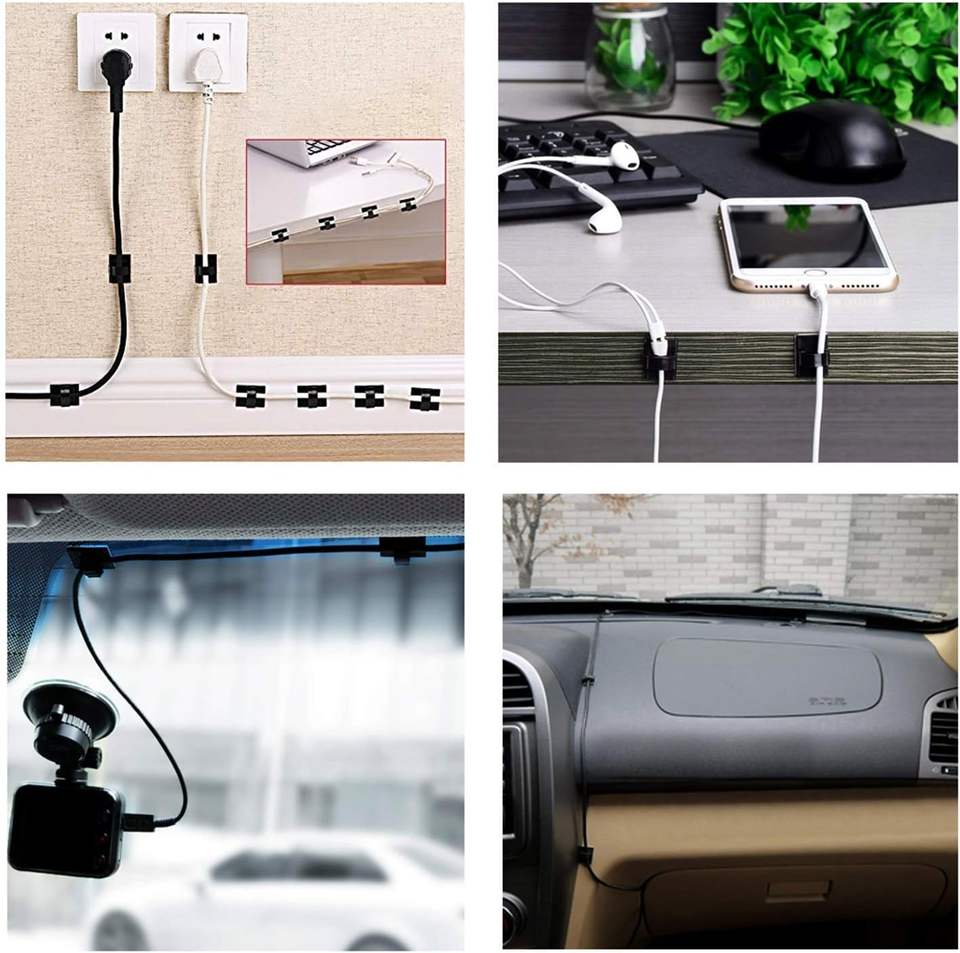 Clips de câble auto-adhésifs noirs 3M Organisateur de cordon Support de fil Gestion de la pince Sticky Desk Car Dash Cam Tables Made Nylon