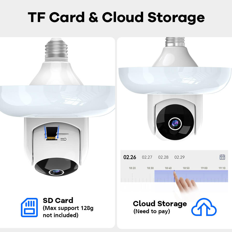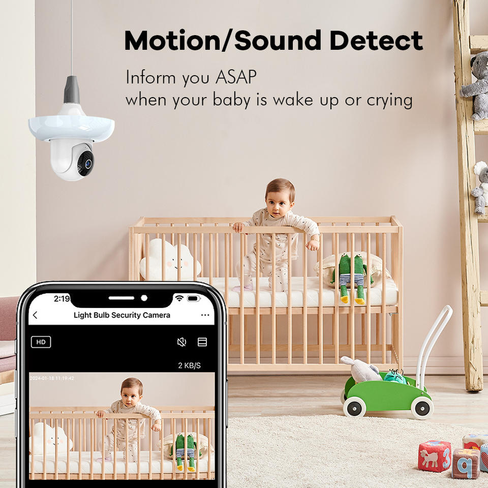 3MP WiFi Bulb Camera with E27 Port Indoor LED Lamp Security Home Smart Camera Motion Sound Alarm with Light/Siren Switch