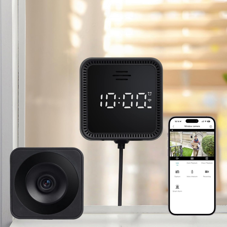 Caméra de fenêtre WiFi 3MP pour intérieur et extérieur, pour la sécurité domestique, avec vision nocturne couleur IA, détection de mouvement des personnes, compatible avec l'application