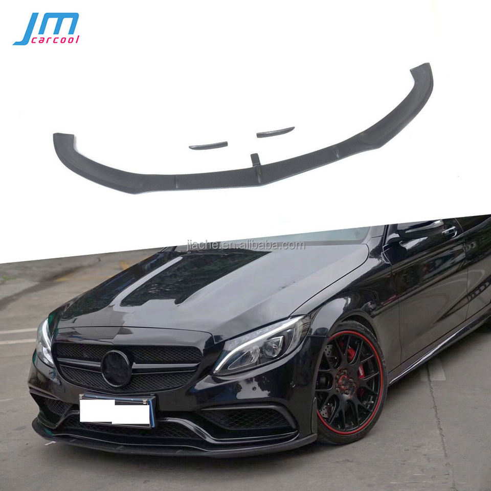 Lame de pare-choc avant à lèvre en Fiber de carbone, 3 pièces, avec garnitures latérales, pour Benz W205 C205 C63 C63s AMG Sedan coupé 2015 — 2022