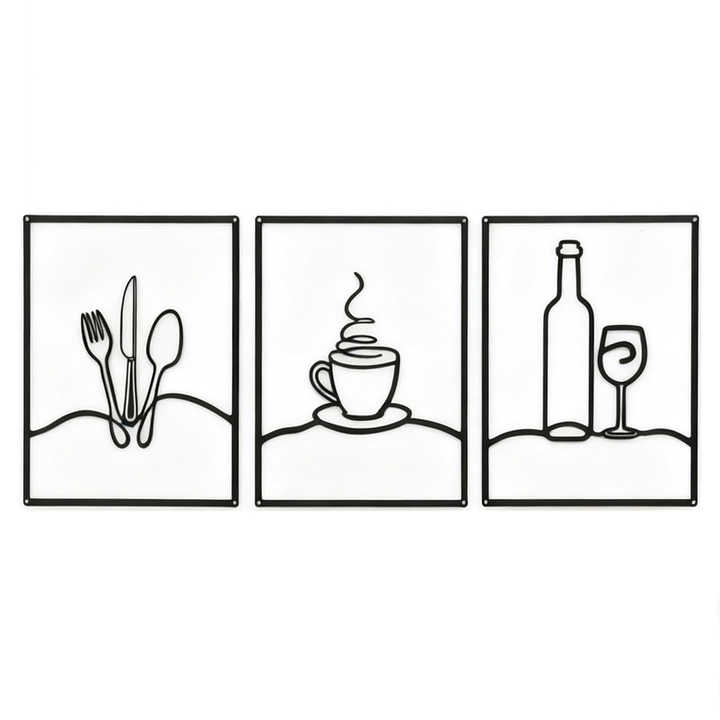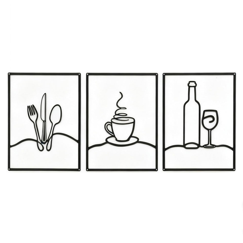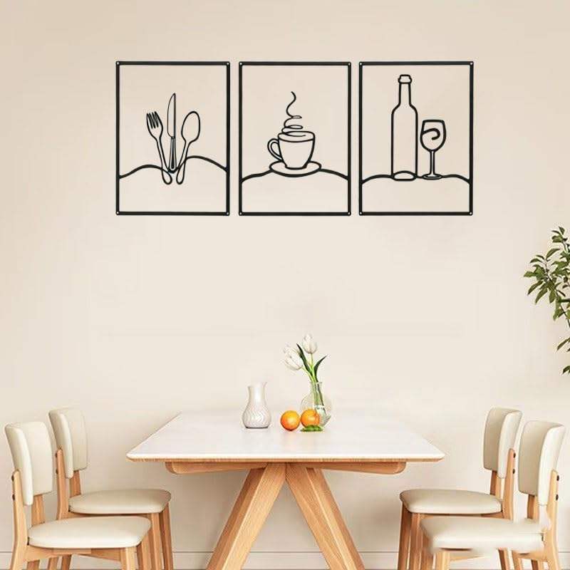 Lot de 3 Panneaux Muraux Métalliques Minimalistes pour Cuisine, Décoration Murale Rustique Noire pour Cuisine, Salle à Manger, Salon, Décoration Intérieure