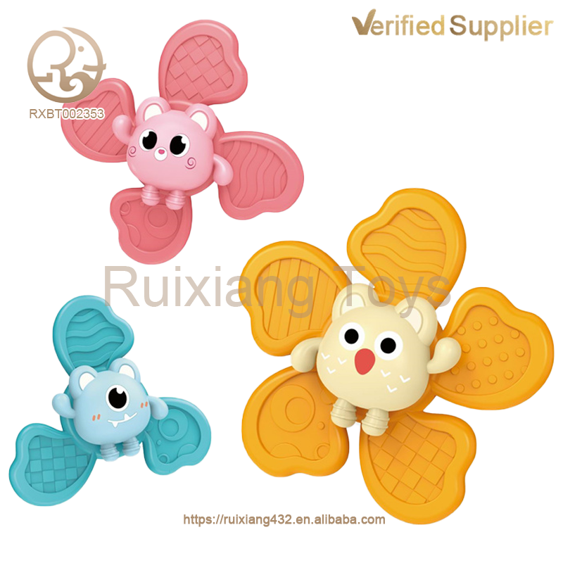 3 pièces de jouets pour bébés en silicone, anneaux de dentition, jouets sensoriels, hochets en plastique, moulin à vent, jouets de bain rotatifs à ventouse