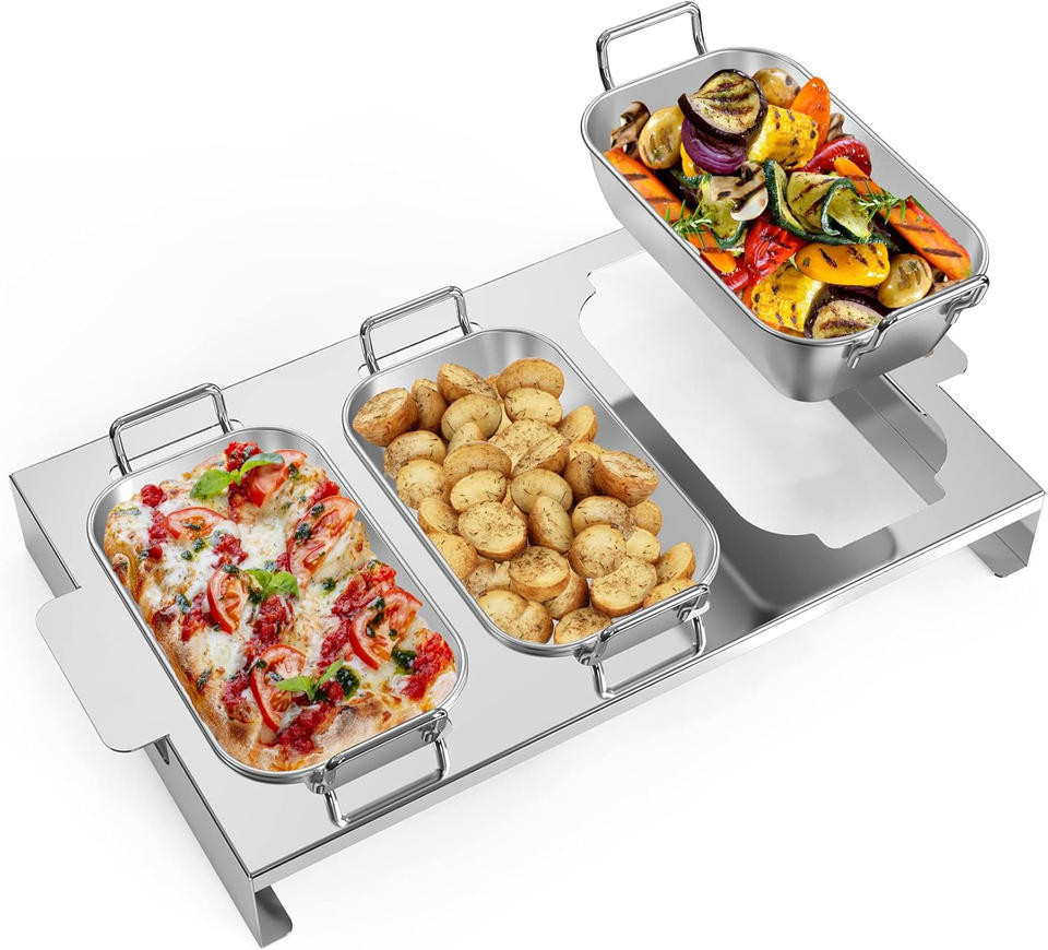 Ensemble de 3 casseroles en acier inoxydable pour barbecue et mini moules de cuisson avec poignée et étagère, ustensiles de cuisine antiadhésifs pour le four et le lave-vaisselle