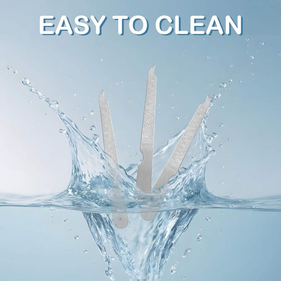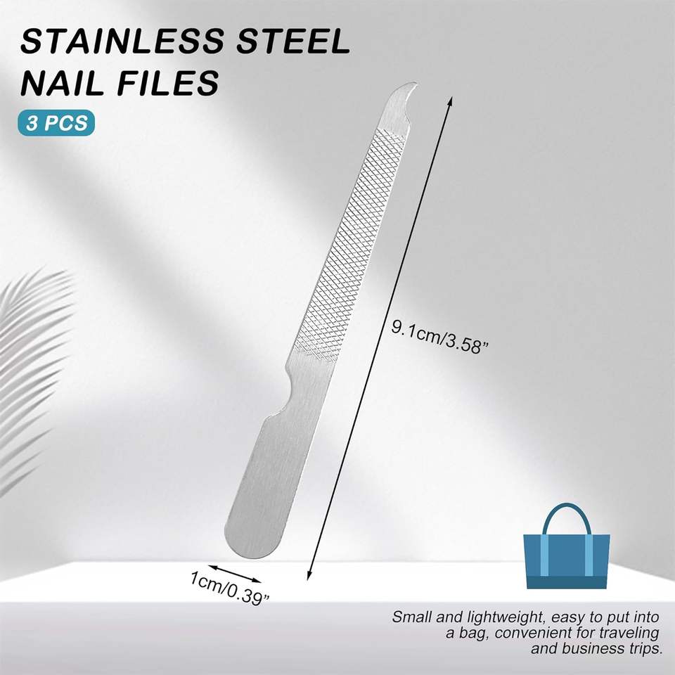 Ensemble de 3 limes à ongles en acier inoxydable Zebra | Outil de manucure durable à double face, à pointe incurvée et pointue, pour salon et usage domestique