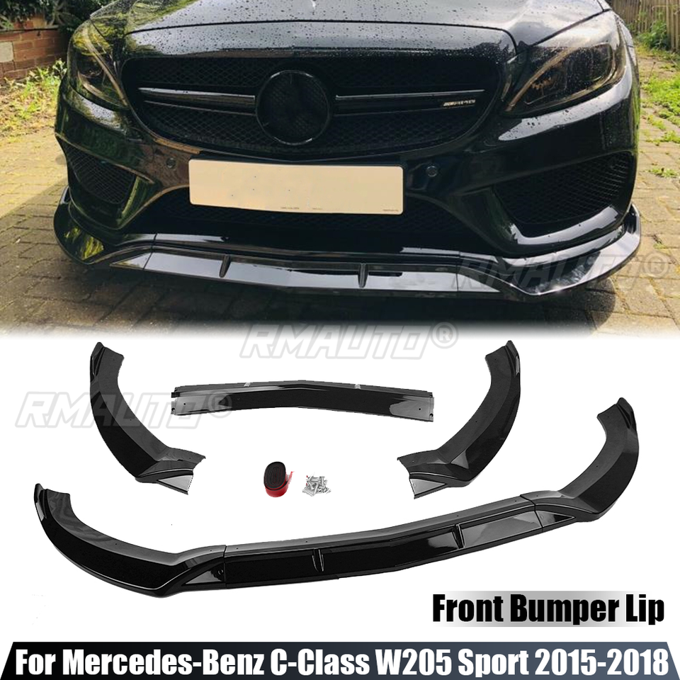 Kit carrosserie 3 pièces : Lame de pare-chocs avant et diffuseur pour Mercedes-Benz Classe C W205 Sport 2015 2016 2017 2018 C180 C200 C300
