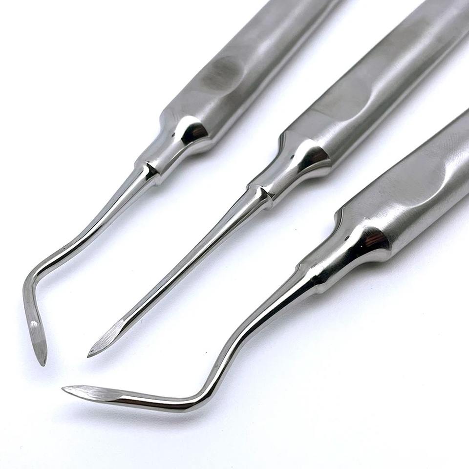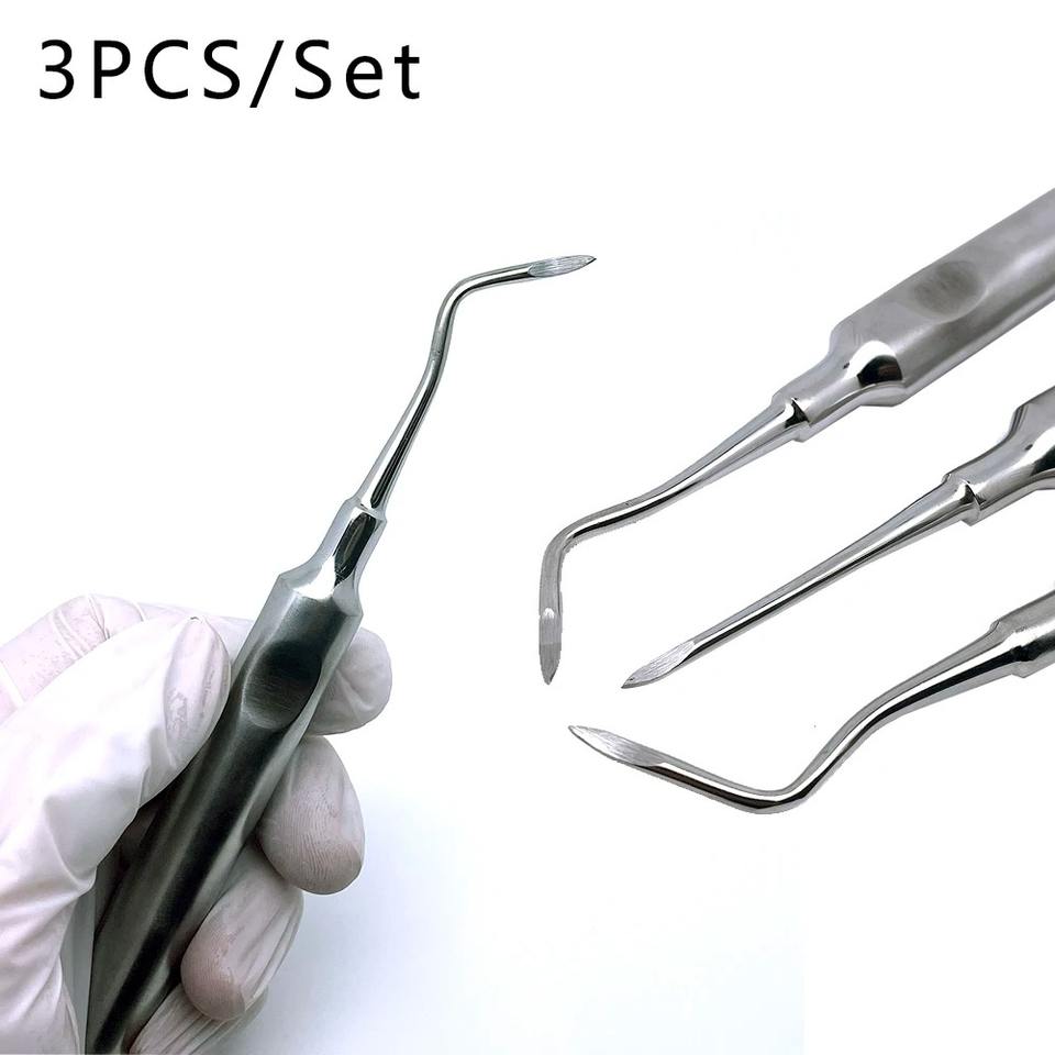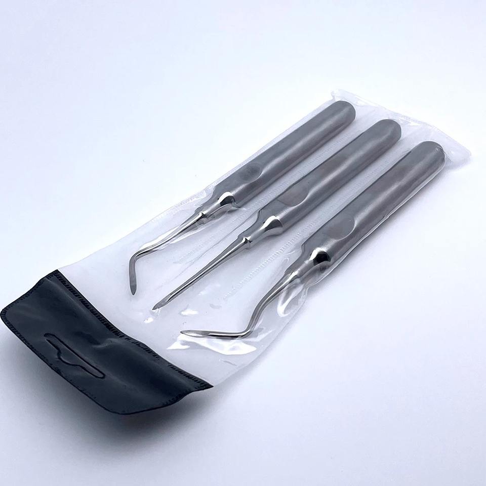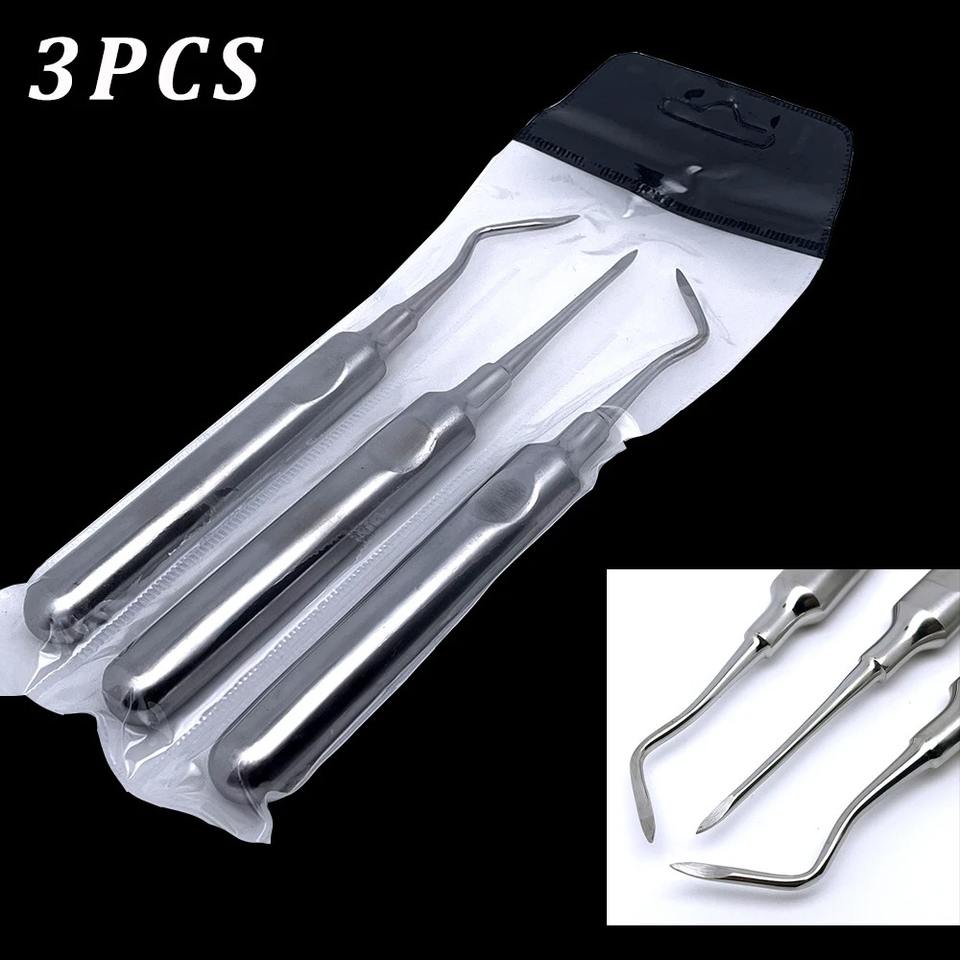 Lot de 3 outils dentaires pour extraction de dents : forceps d'extraction, élévateur de racine courbé en acier inoxydable