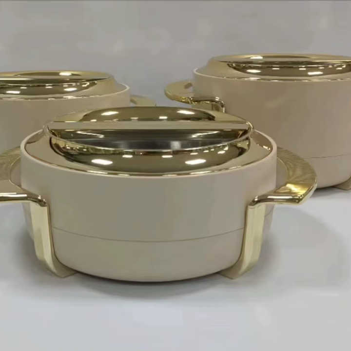 Ensemble de service isotherme 3 pièces avec fenêtre visible, 1,8 L, 2,3 L, 2,8 L, en acier inoxydable avec bordure dorée texturée