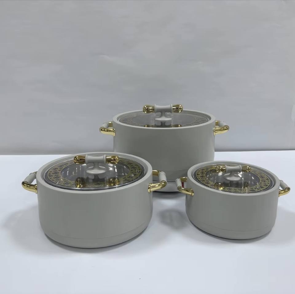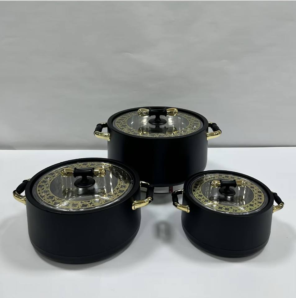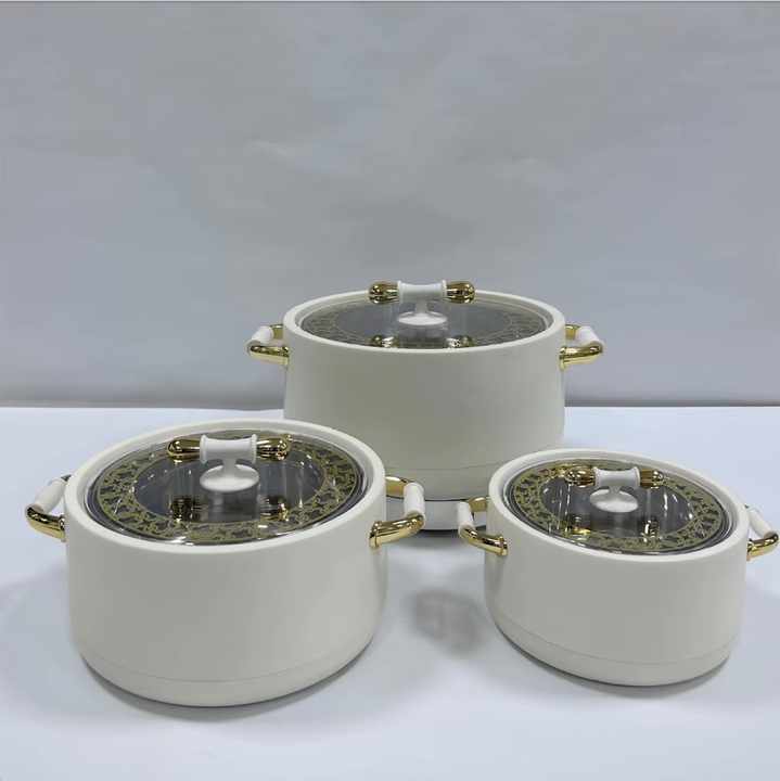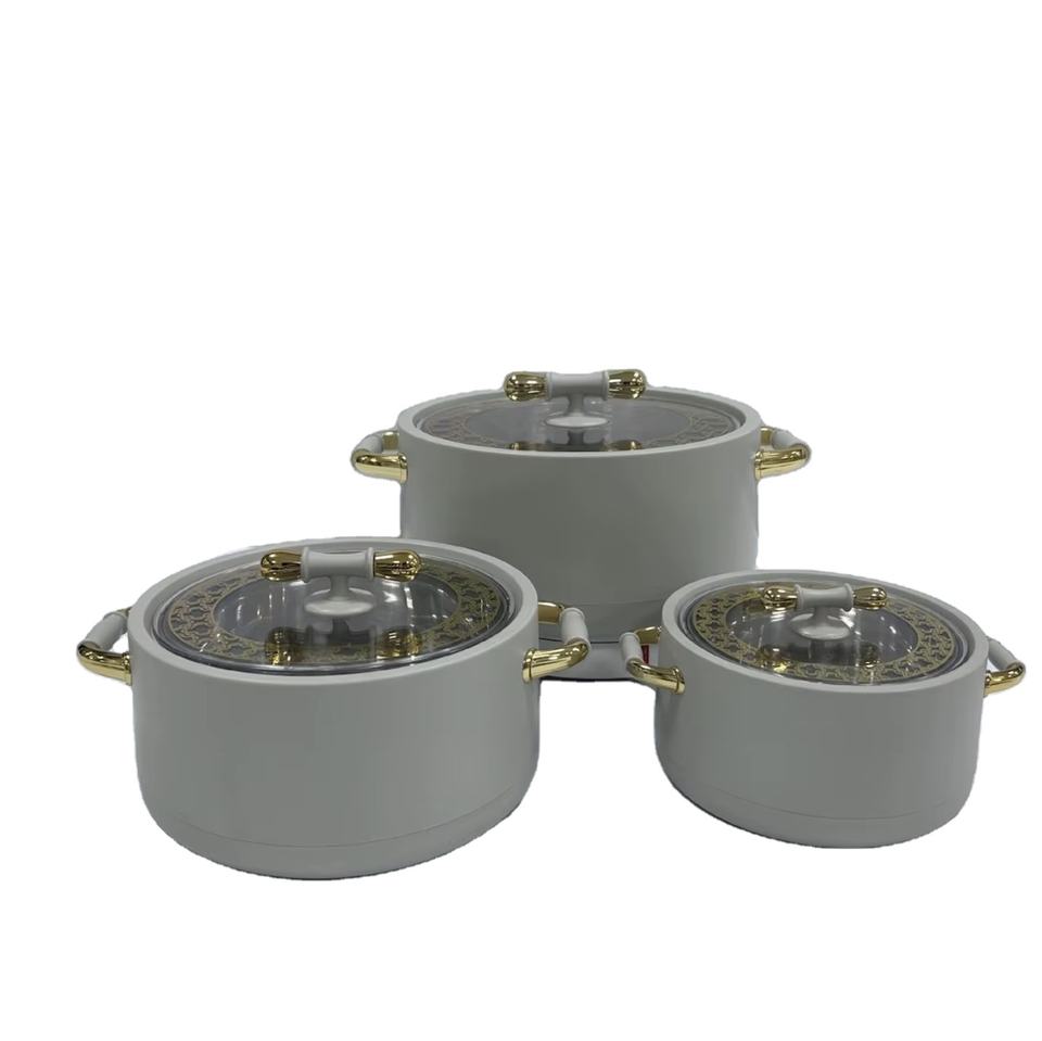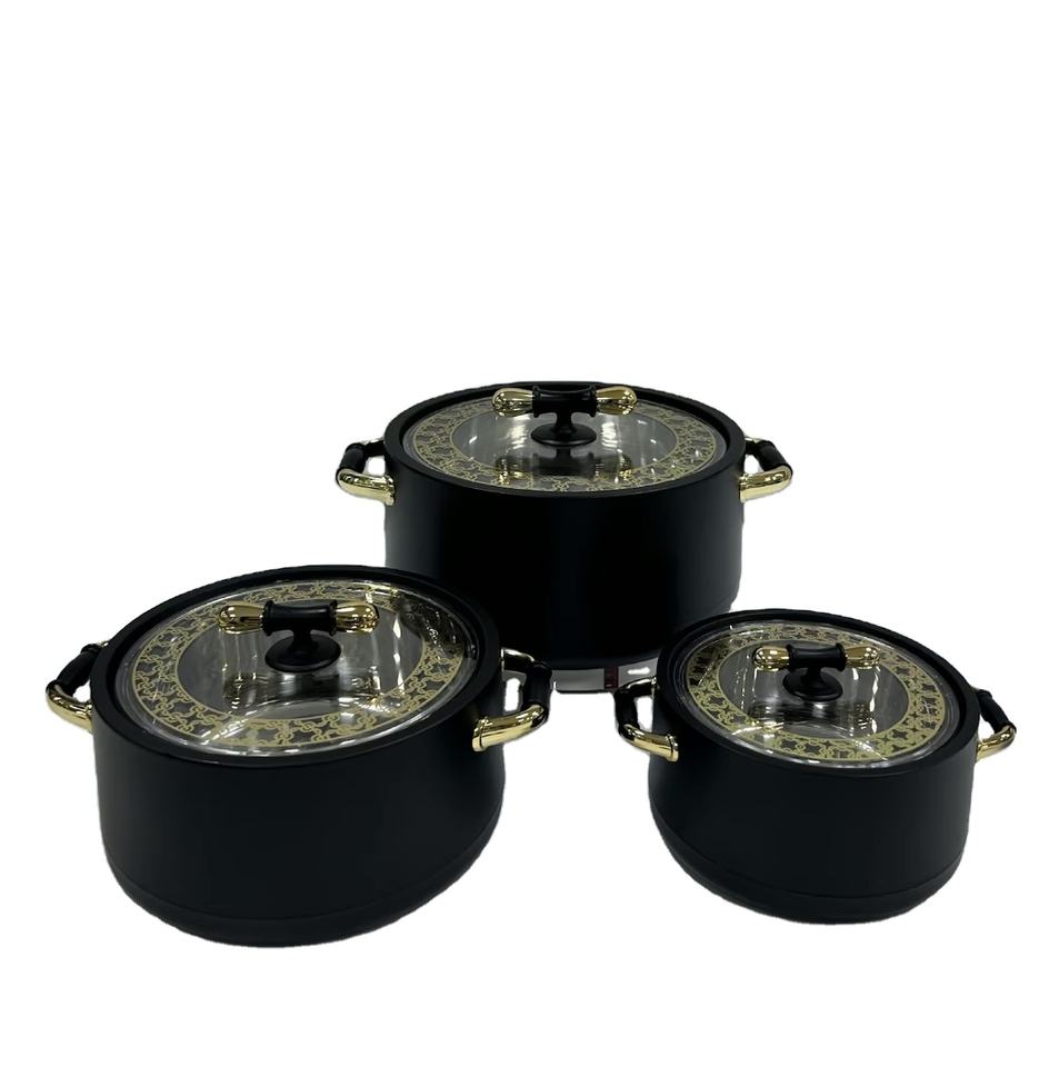 Lot de 3 casseroles isothermes à fenêtre visible, 1L, 2L, 3.5L, avec revêtement en acier inoxydable et bouton unique en forme d'haltère