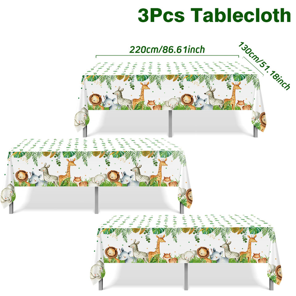 3 pièces de couvertures de table jetables queue de sirène Nappes de chasse dans la jungle Nappes imprimées d'animaux pour décorations de douche de bébé