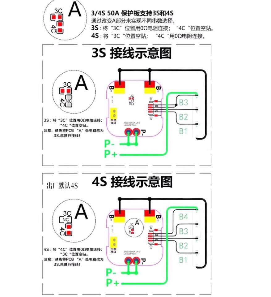3S 4S 6S 50A Li-ion Lithium Battery Protection Board BMS PCM module