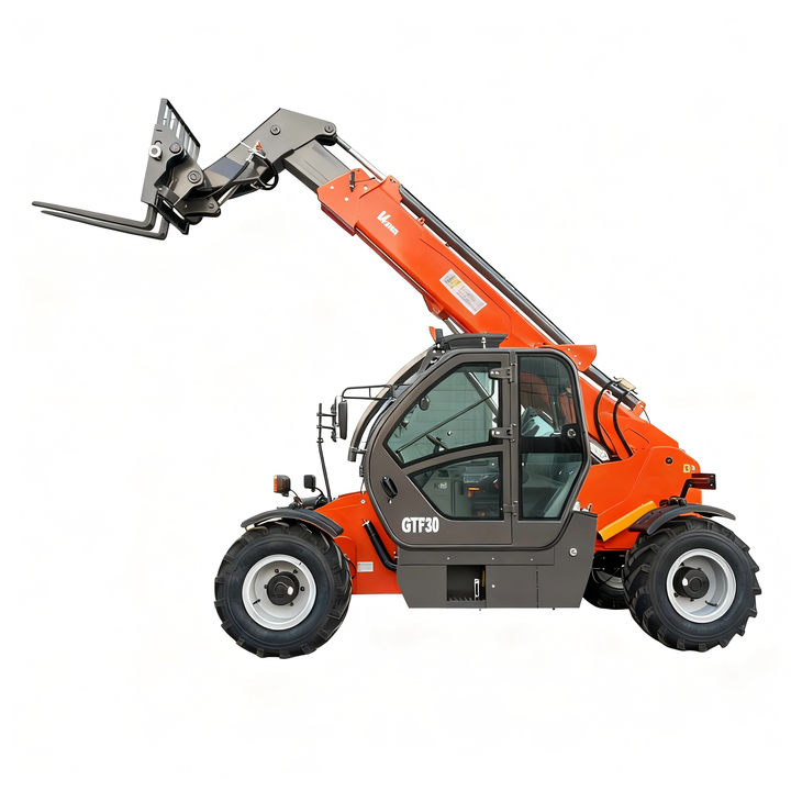 Chariot télescopique Manitou 3T : 7 m de levage, moteur Cummins, 4 roues motrices/4 roues motrices, automatique, godet de 3 m³.
