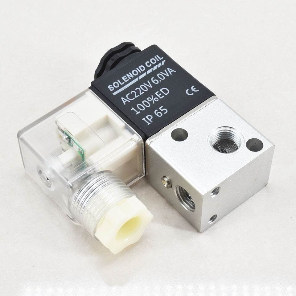 3V1-06 Vanne pneumatique à contrôle micro directionnel 1/8 pouces 3/2 voies Mini solénoïde AC220V DC24V AC110V DC12V 3V1-06 Valve