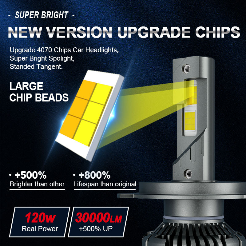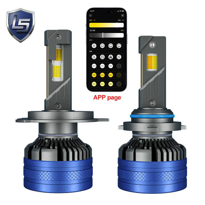 Feux de croisement LED pour voiture 3 couleurs K68, contrôle par application, H1 H4 H7 140W 30000 lumens 12V, universels, phares 880 9005 9006