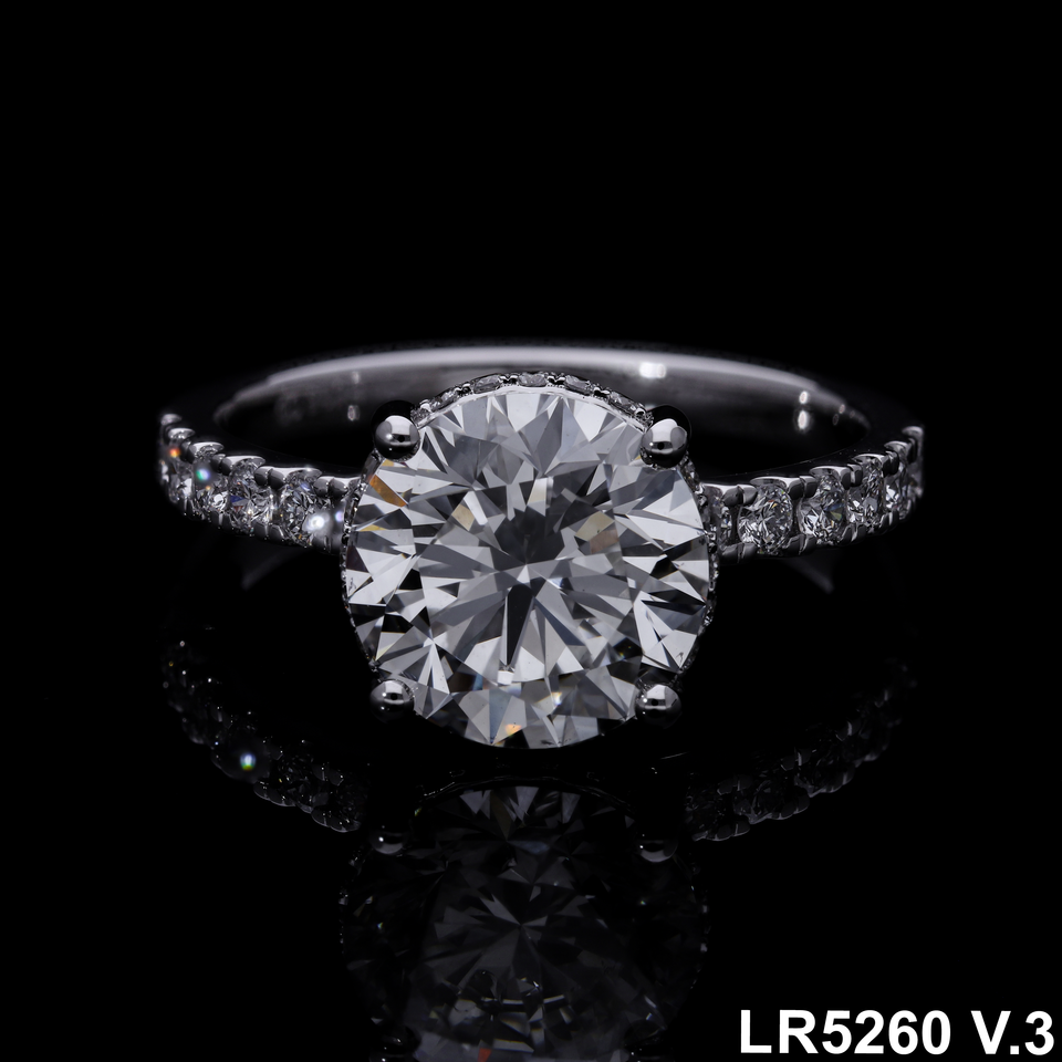 Bague de fiançailles en or blanc plaqué rhodium 14KT/18KT classique avec diamant rond brillant de 3 carats cultivé en laboratoire et bande pavée
