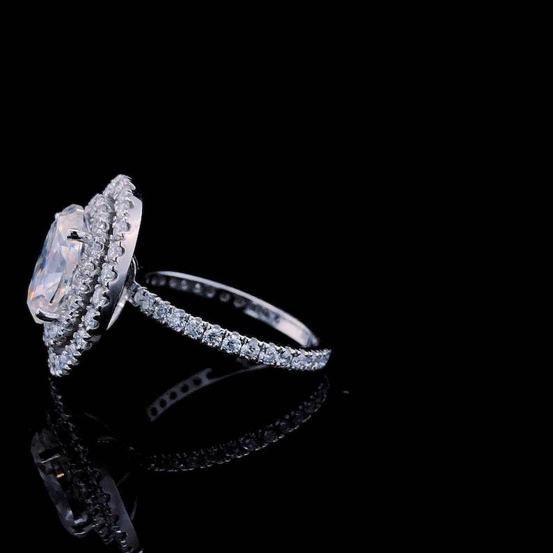 3ct Oval Cut VVS1 Moissanite Diamond Wedding Ring Gift for Women's Double Halo Platinum/Gold Plated Sterling Silver Fine Jewelry