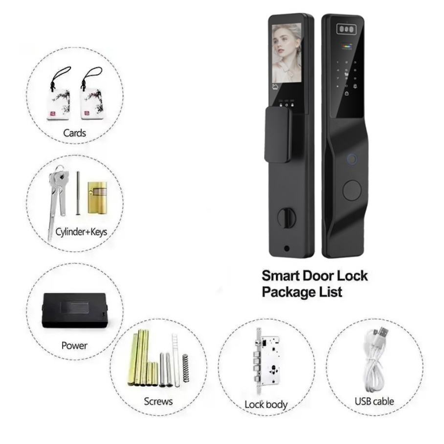 3D Face Recognition Smart Door Lock Tuya WiFi Fingerprint Wood Door Active Video Intercom Digital Automatic Lock