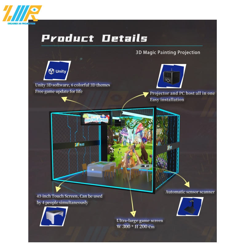 Scanner de peinture interactif 3d Dessins sur l'écran de dessin mural Ensemble de projection avec écran tactile et modes de numérisation