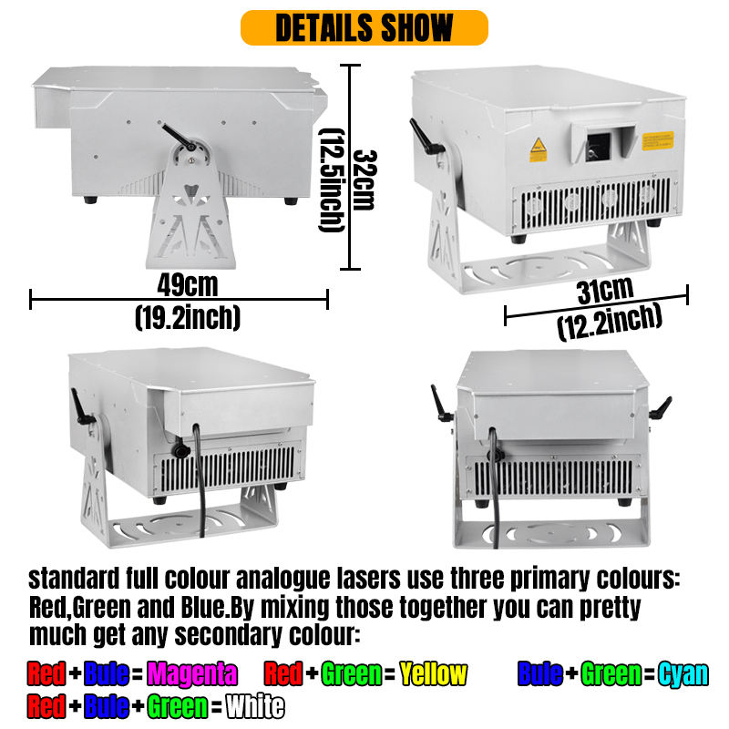 Puissance de laser:30W (rouge 8W, vert 10W, bleu 12W)