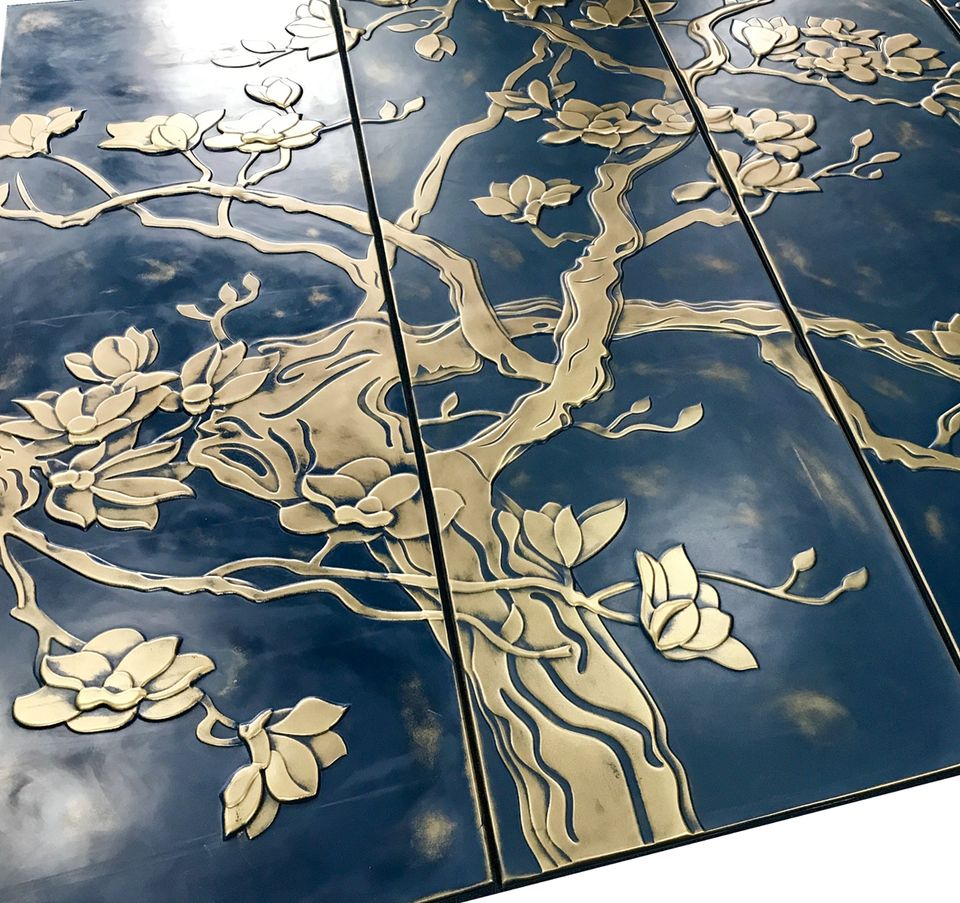 Décoration murale en cuir 3D avec motif floral en relief, 4 pièces/ensemble, décoration murale en cuir