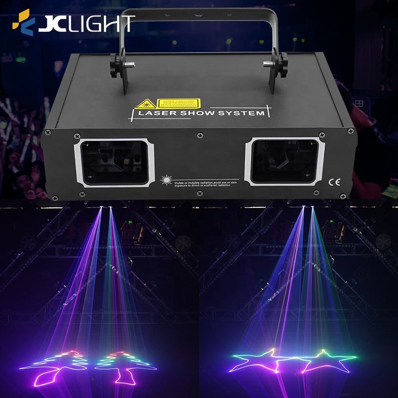 Projecteur Laser Rgb 3d à 2 lentilles, éclairage de scène, contrôle de la musique, Dj Club, faisceau lumineux Dmx, pour piste de danse Disco