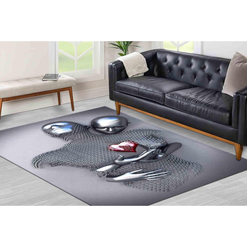 Tapis 3D argenté pour couple, Tapis Kuman, Tapis romantique pour couple, Tapis métallique 3D, Tapis cadeau pour amoureux, Cadeau Saint-Valentin, Tapis doux à poils longs