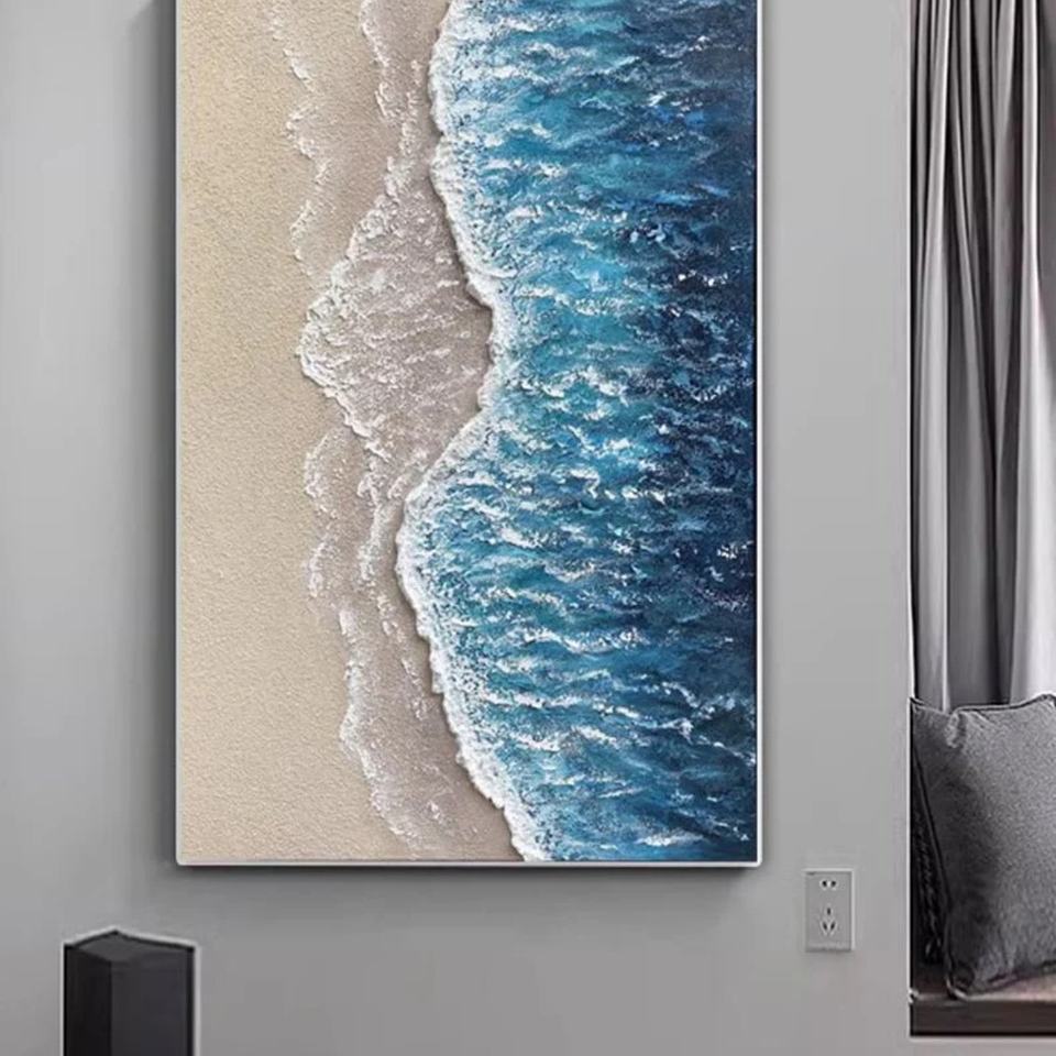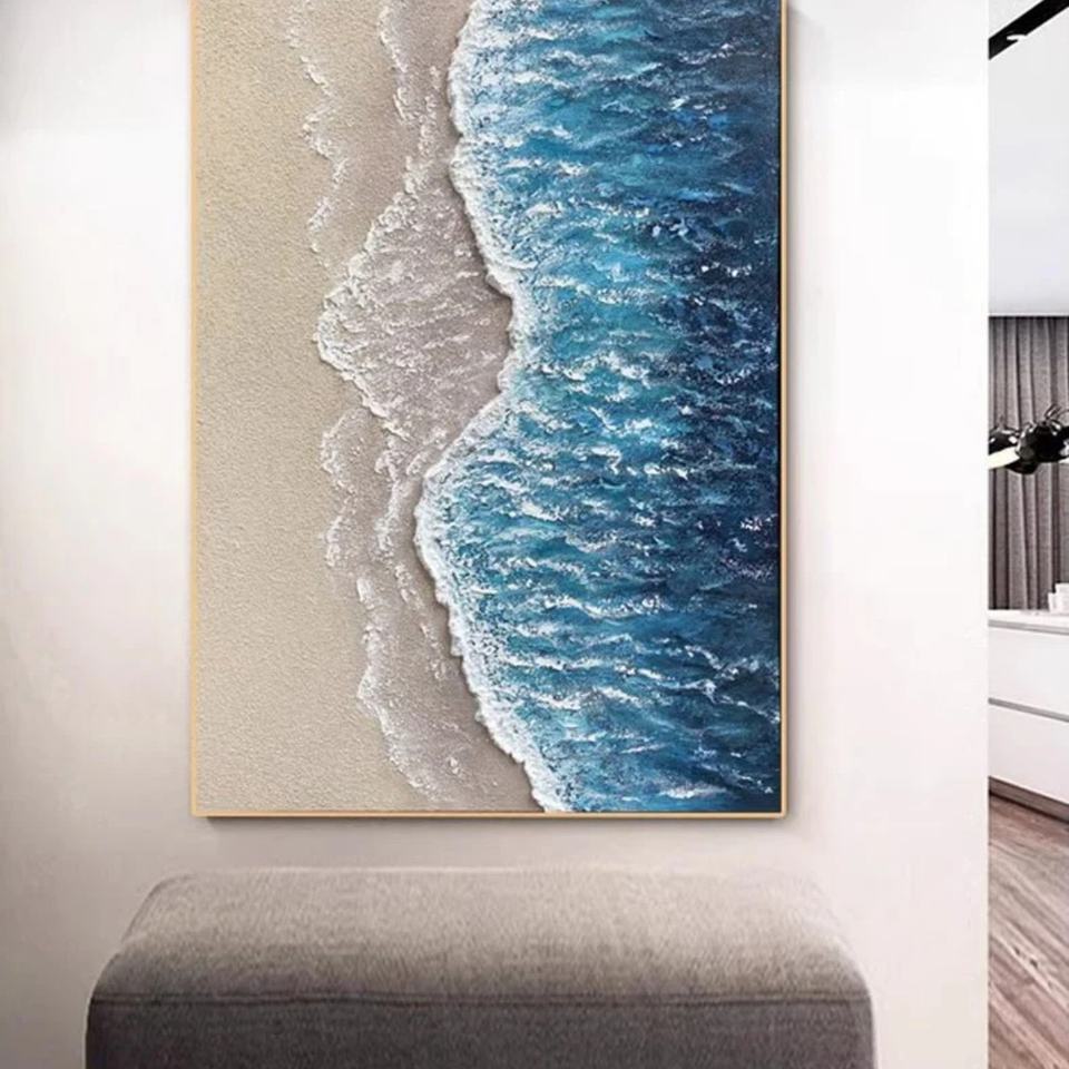 Peinture murale originale en acrylique abstraite bleue grand format, peinte à la main en 3D, avec texture 3D sur toile, cadeau idéal pour l'inauguration d'une maison