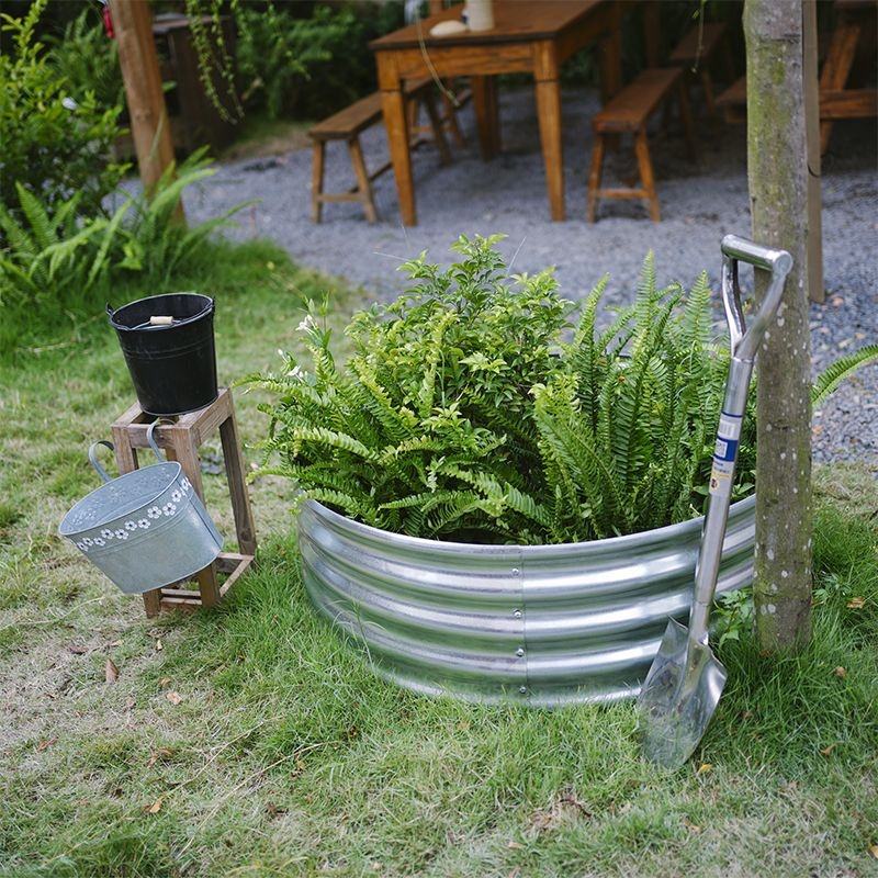 Jardinière surélevée extérieure ronde en acier galvanisé moderne avec revêtement en poudre pour la décoration de la maison, l'arrosage des légumes et des plantes à fleurs