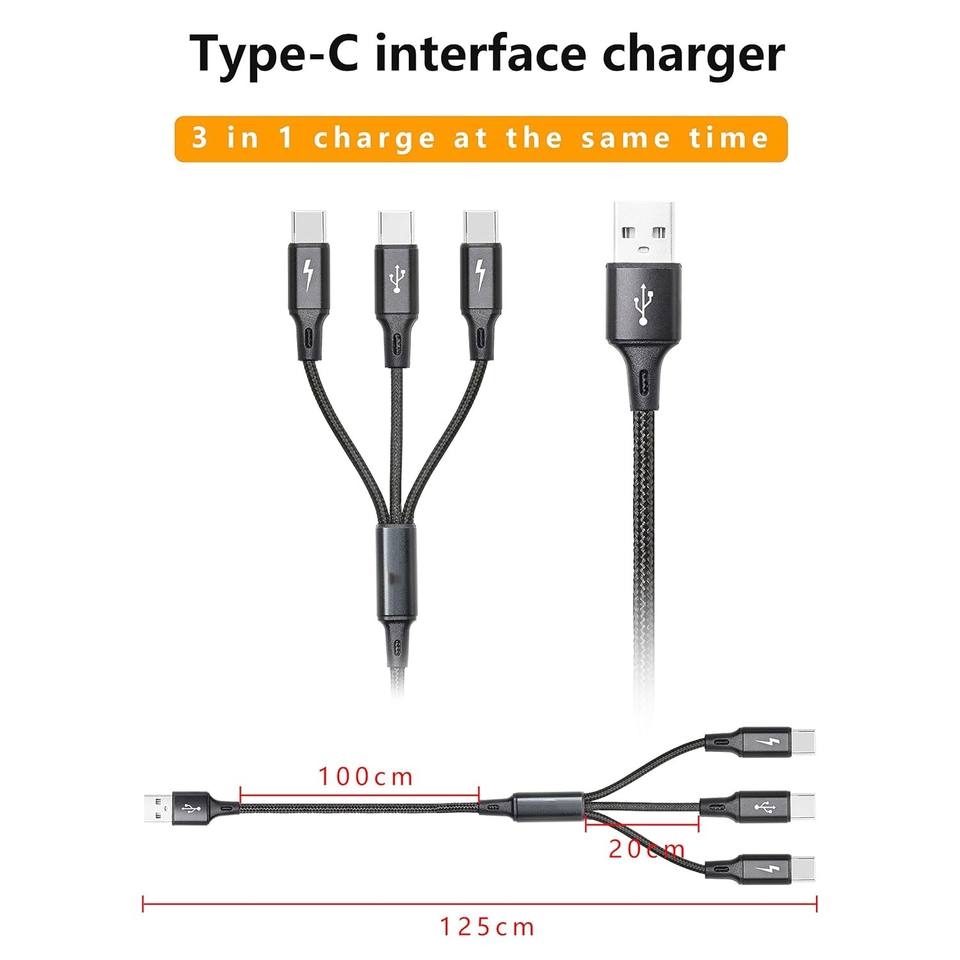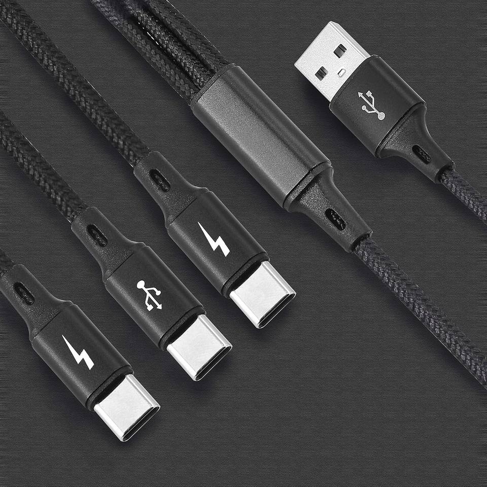 3in1 USB C/trois têtes de type C Câble 3 en 1 Multi USB Charging court Travel Size Cord pour Samsung Android pour Smartphones