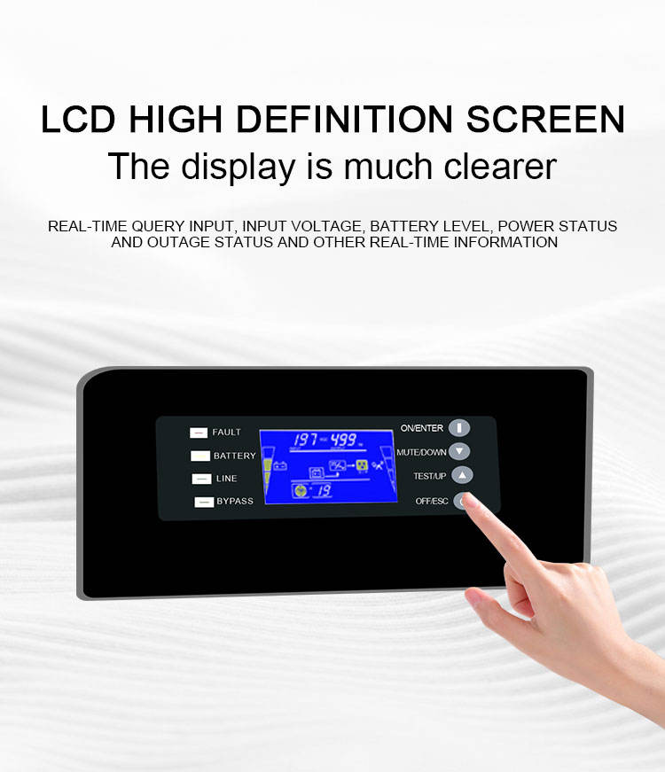 Onduleur monophasé en ligne 3kVA 2400W à haute efficacité, zéro temps de transfert, avec batterie au plomb-acide 72V intégrée, onde sinusoïdale pure