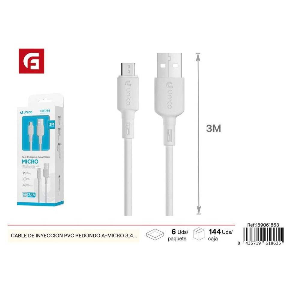 Câble d'injection PVC rond 3m A-Micro 3.4A-Accessoires électroniques