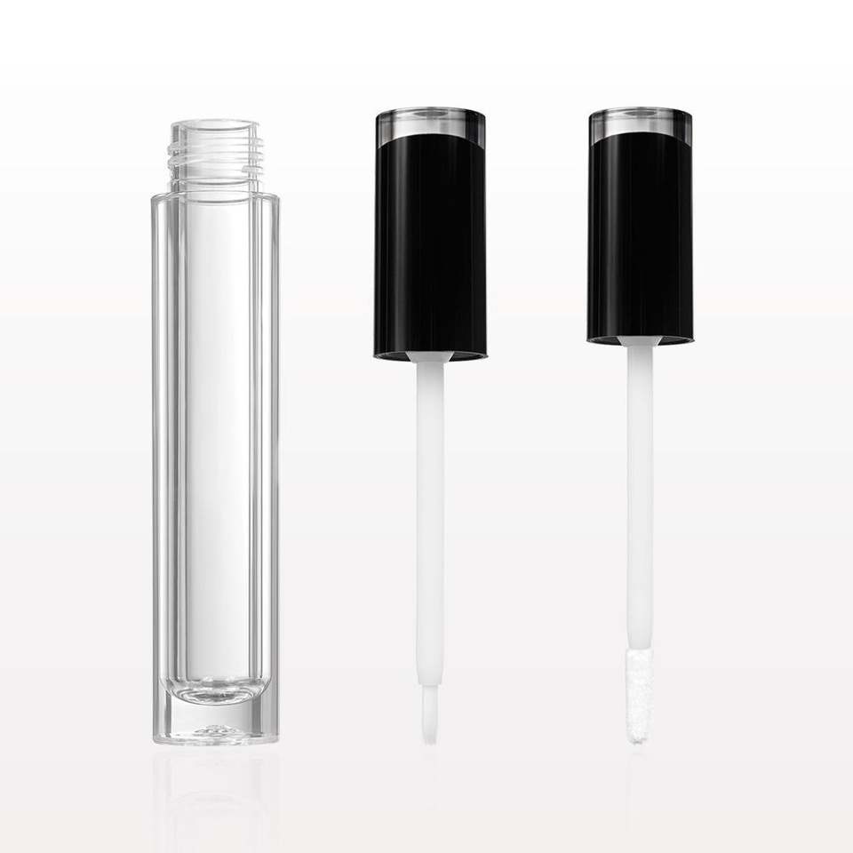 3ml Portable Cylinder Bottle Vial With Flocked Tip Doe Foot Lip Gloss Black APPlicator Cap Flacone Cosmetic