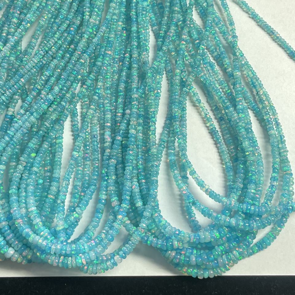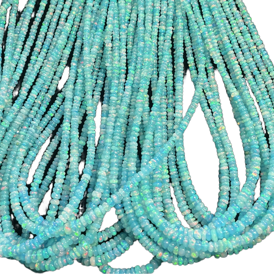 Product Name:Natural Aquamarine Blue Ethiopian Opal Smooth Rondelle Gemstone Beads