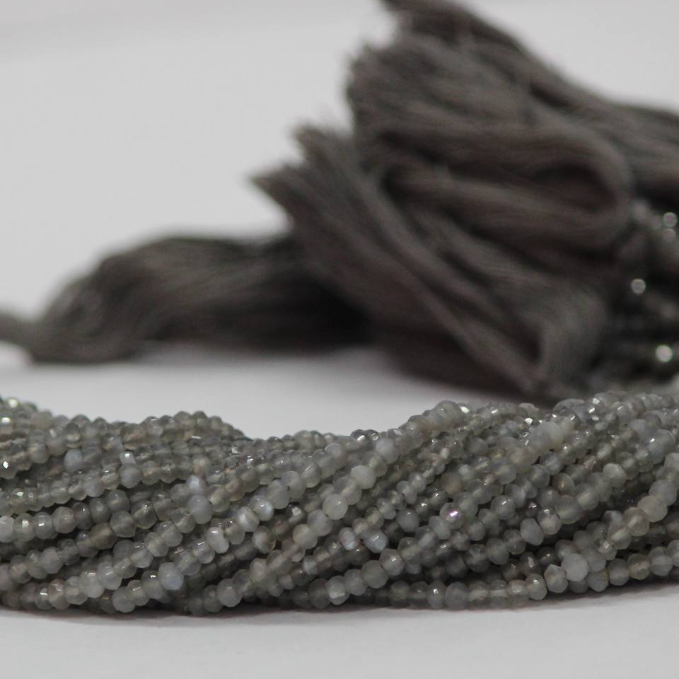 Natural Gray Moonstone Faceted Rondelle Gemstone Beads Strand