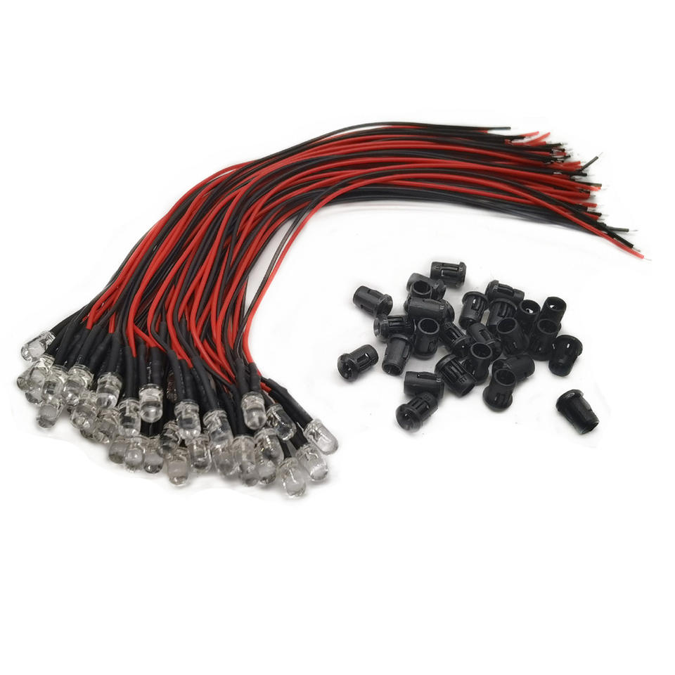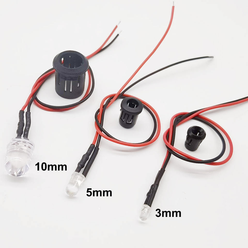 Ampoules LED pré-câblées colorées de 3 mm, 5 mm, 10 mm avec fils de 20 cm, 3V, 5V, 12V, 24V DC et supports en plastique