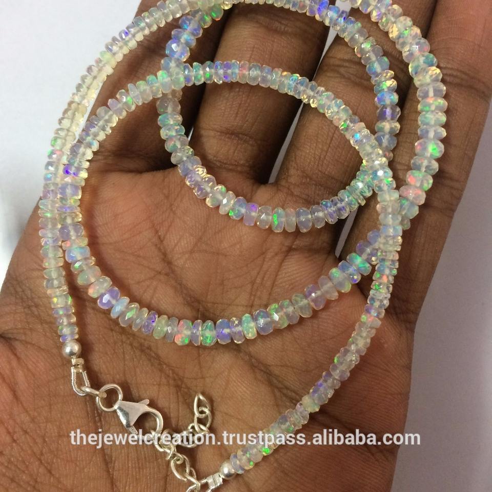 Product Name:Natural White Ethiopian Opal Faceted Beads 925 Silver Necklace