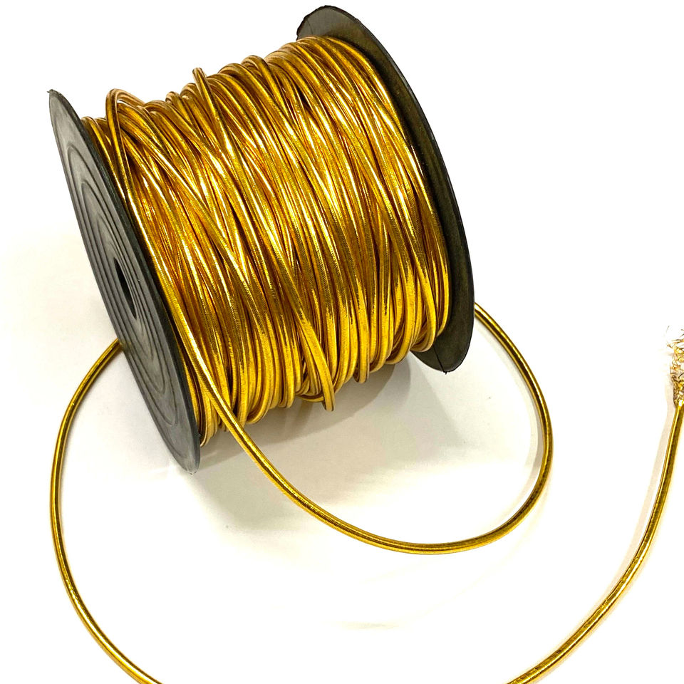 Corde élastique tressée métallique imperméable dorée de 3mm pour sacs, chaussures et vêtements-Vente en gros
