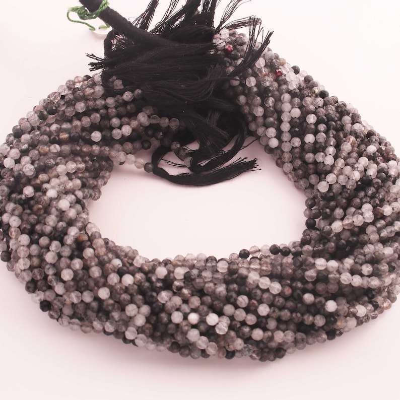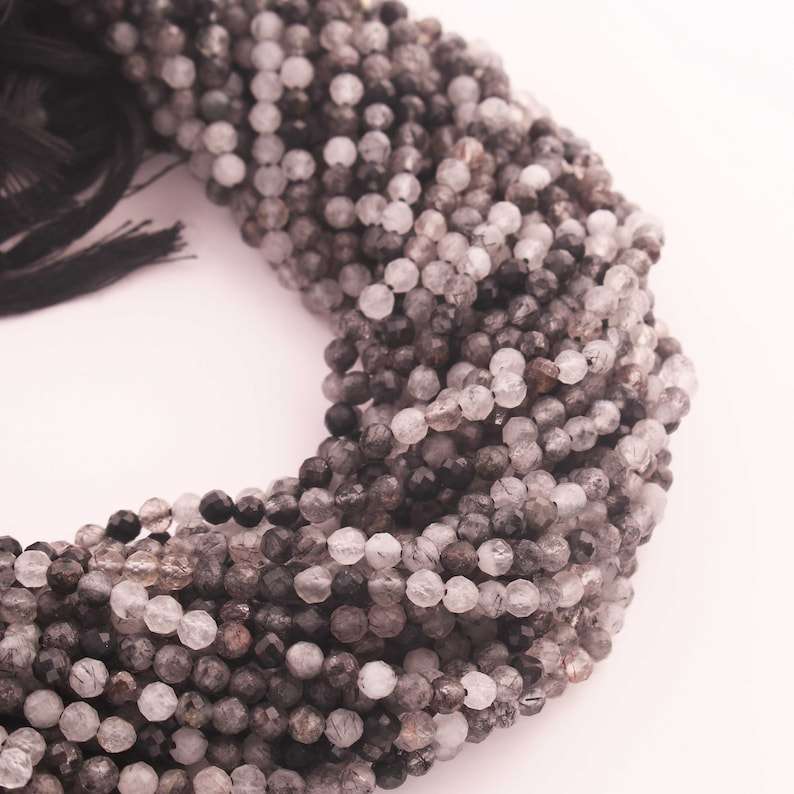 3mm Rutile Noir Naturel Micro Faceted Round Gemstone Beads Loose Stone Beads Strands for Jewelry Making par Indian Manufacturer