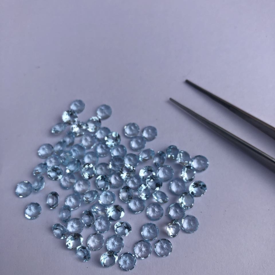 Product Name:3mm Natural Sky Blue Topaz Stone Faceted Round Cut Loose Gemstone