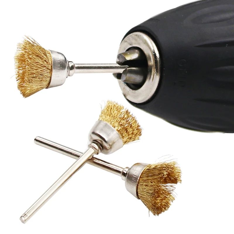 Mini brosse en laiton à tige d'acier de 3mm Outil rotatif pour perceuse Dremel Meule de polissage Petite brosse en forme de T Accessoires