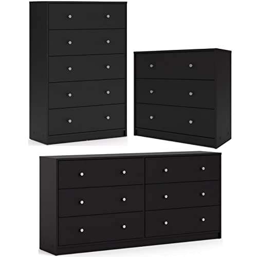 3 pièces ensemble de 2 commodes et 6 tiroirs commode Double-noir meubles de chambre à coucher