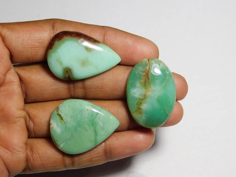 3pcs Chrysoprase Cabochons Lot de pierres précieuses naturelles pour la fabrication de bijoux 102Cts