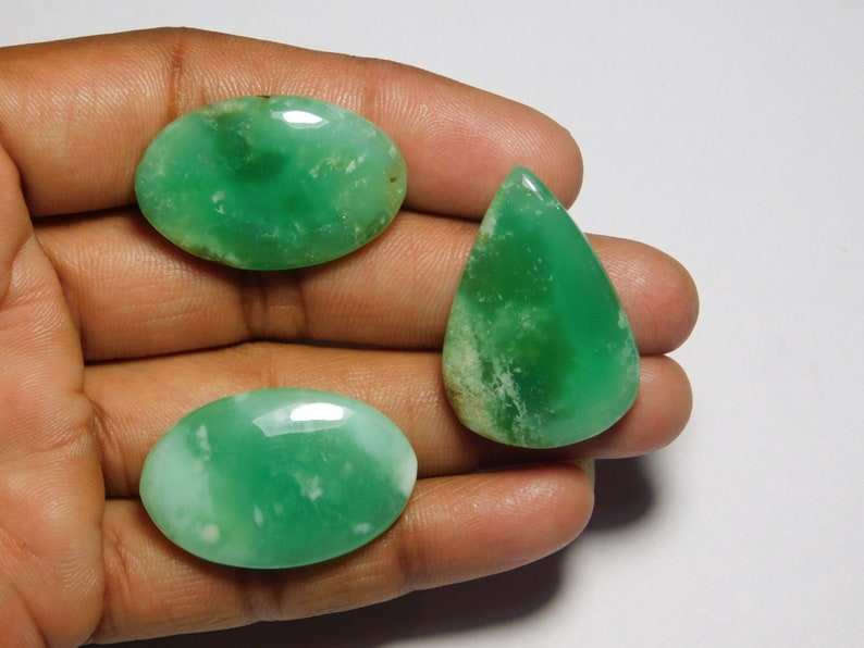3pcs Chrysoprase Gemstone Lot Natural Chrysoprase Cabochons Loose Precious Stones for Jewelry Making 101Cts