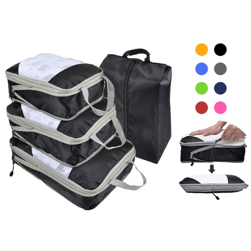 3pcs Cubes d'emballage de compression pour le stockage de voyage Organisateur Sac Set Valise Bagages Vêtements Chaussures Emballage Cube pour économiser de l'espace