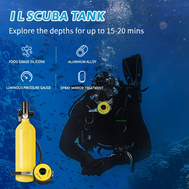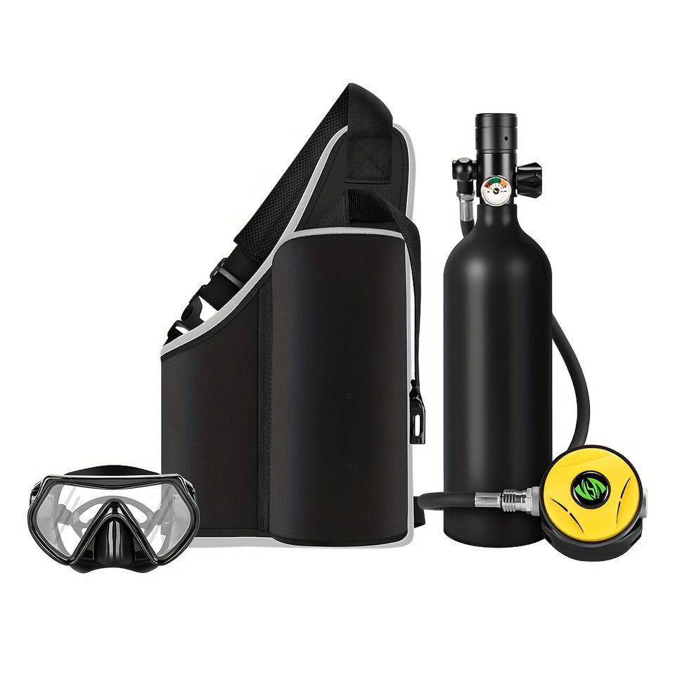 3pcs Réservoir de plongée Snorkel Masl Set 1L Cylindre en alliage d'aluminium Universal Fit Leisure Diving Gear and Backup Air Bottle for Rescue