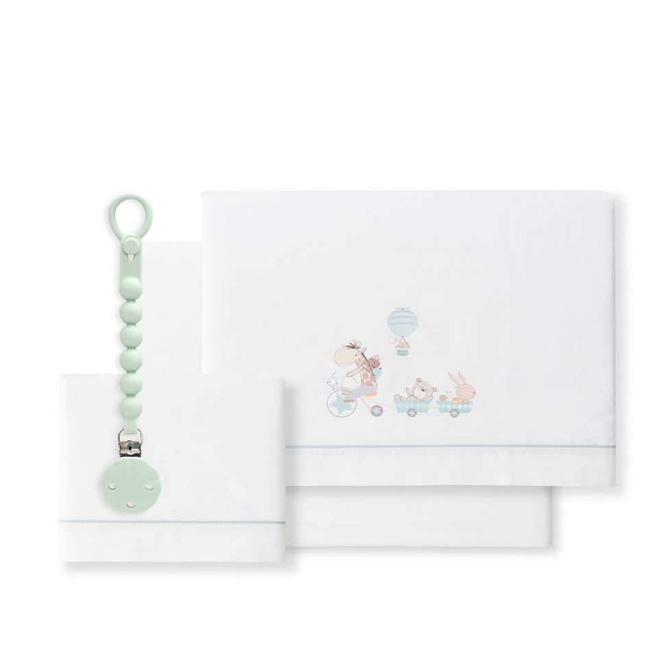 Ensemble de literie pour bébé modèle Jirafa 3 pièces avec porte-sucette, 100% coton, tissage technique, motif de dessin animé