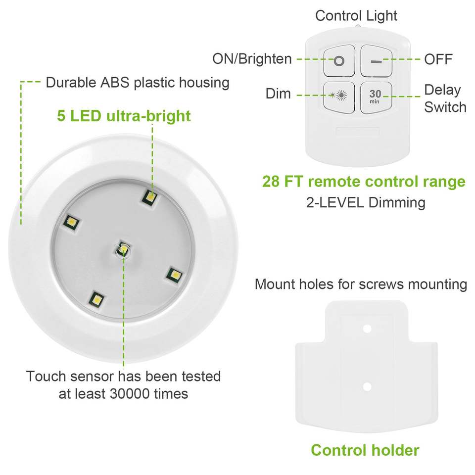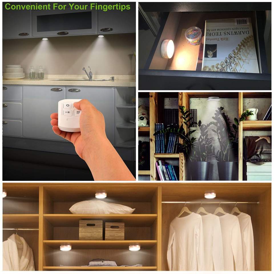 Lot de 3 lampes LED nocturnes à intensité variable, sans fil, à piles, pour placard, avec télécommande et fixation adhésive