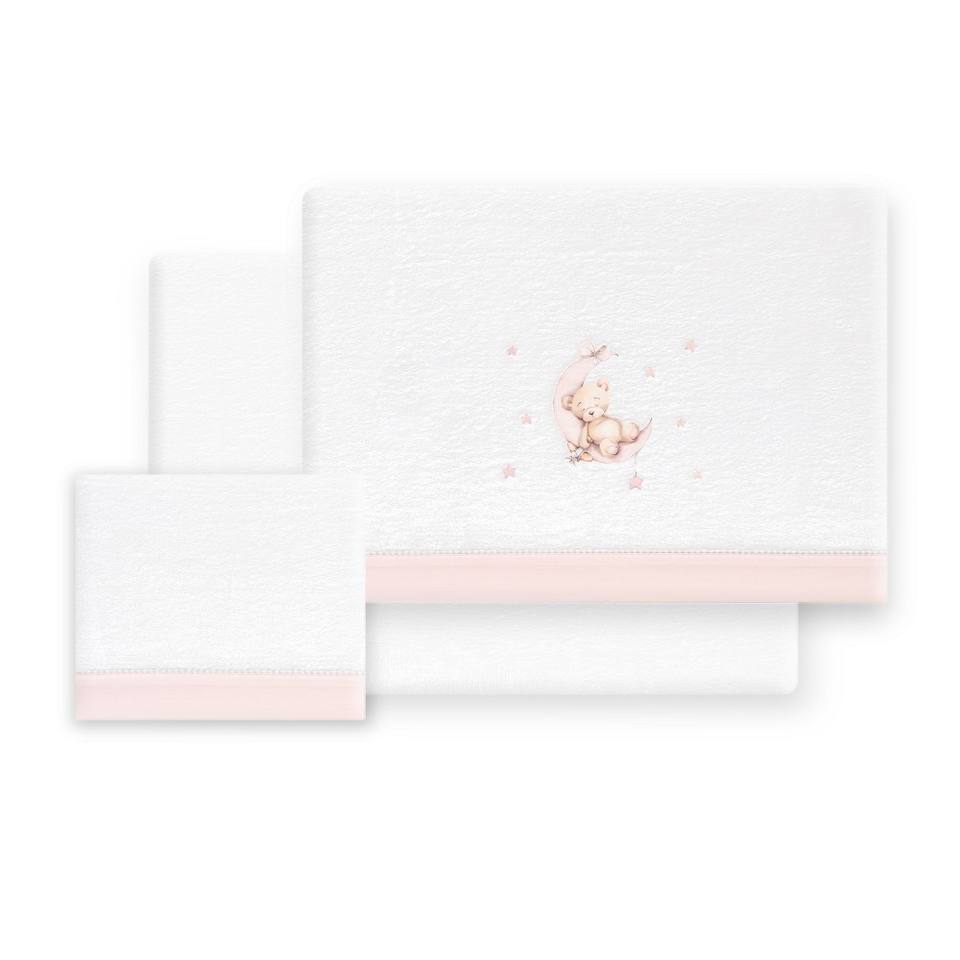 Ensemble de literie 3 pièces modèle Oso-Luna pour lit bébé, tissu polaire tissé corail avec motif de personnages, incroyablement doux et confortable !
