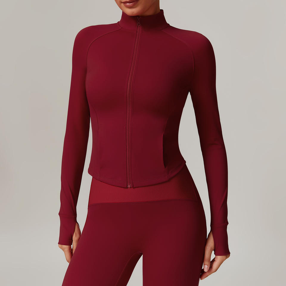 3pcs veste longue à fermeture éclair Col montant Séchage rapide Vêtements de yoga Manches longues Vestes chaudes coupe-vent pour femmes Slim-fit Sports Running