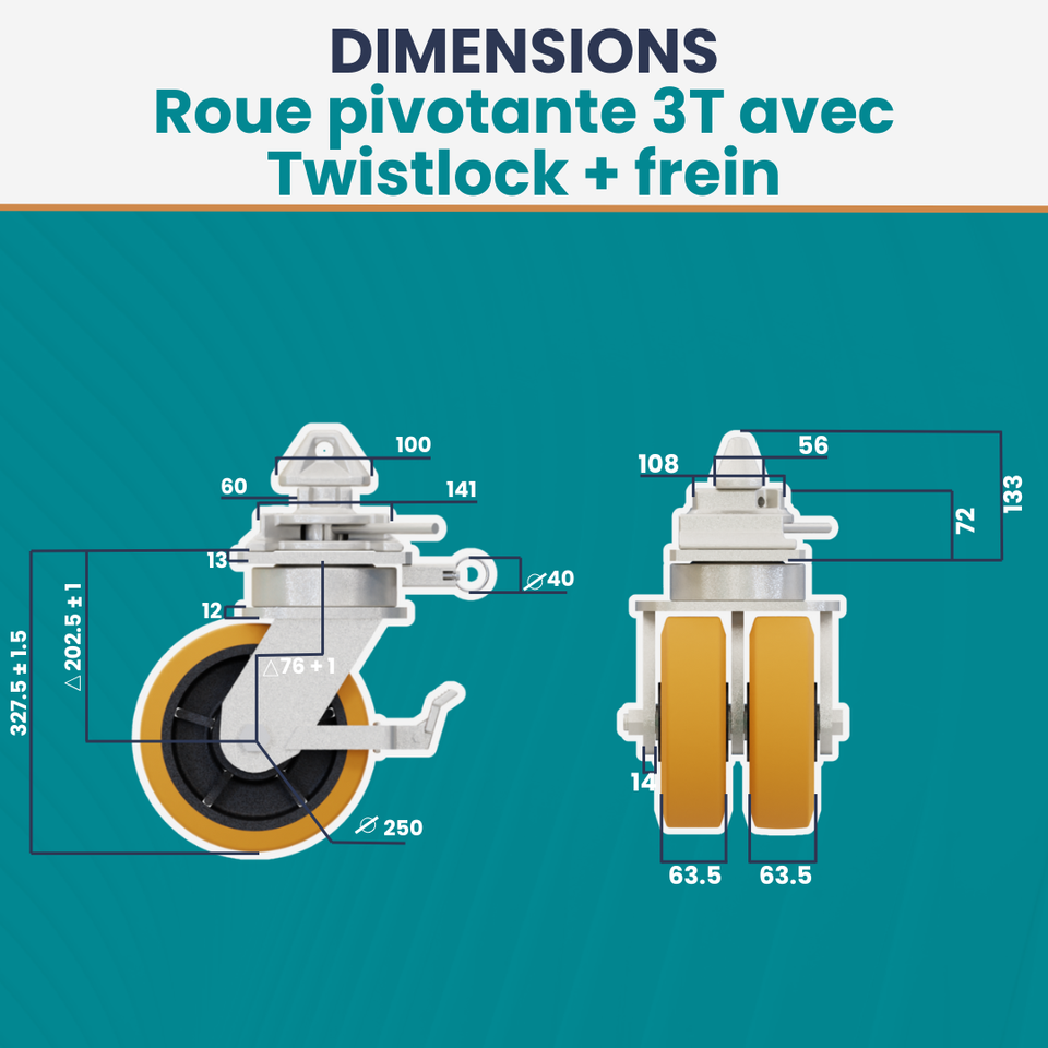 Roue de roulette solide 3t composée de PVC en acier polyuréthane PP avec Twistlock et frein