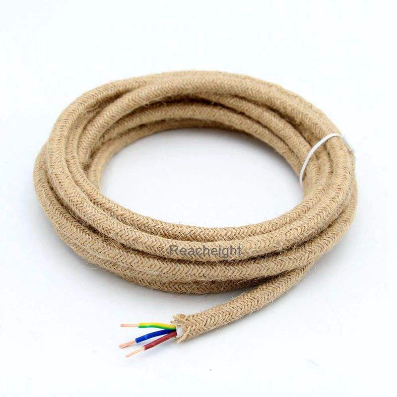 Câble électrique textilé en cuivre toronné 3x0,75mm² isolé PVC avec âme en jute et revêtement en tissu vintage coloré pour lustres
